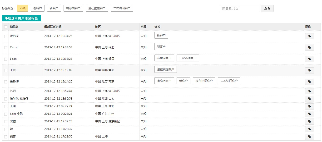 1、 用户标签:可以给用户贴上标签,高效管理、方便筛选、利于识别、精准营销!